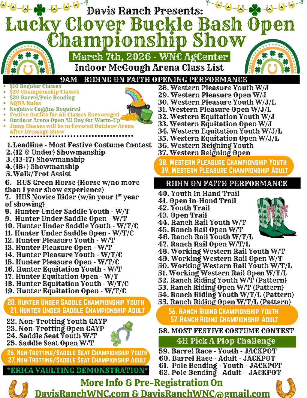 Come one come ALL to a show like no other! Starting at 9am we have Dressage Show, Open Show Championship, Jump Classes and ending the day wi...